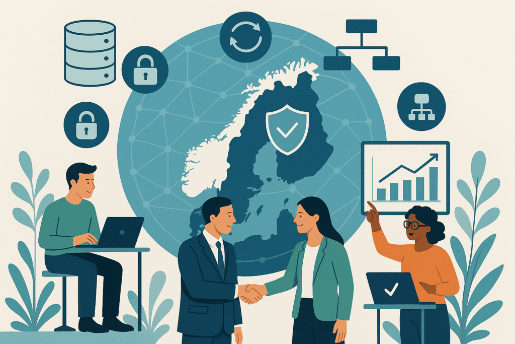 Vi arbeider aktivt for å utvikle en norsk standard for data spaces som skal følge internasjonale rammeverk, teknologier og standarder, samtidig som den tilpasses norske forhold. Denne standarden vil legge grunnlaget for effektiv datadeling og samarbeid på tvers av sektorer, og sikre at norske aktører kan utnytte data på en sikker og bærekraftig måte. Ved å kombinere internasjonal|e beste praksiser med norske behov og krav, skal vi skape en fleksibel og fremtidsrettet standard som støtter både innovasjon og digital transformasjon i Norge.